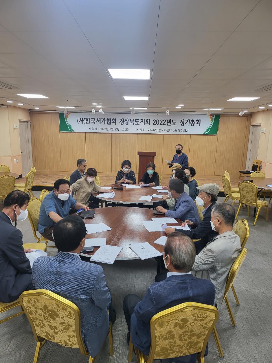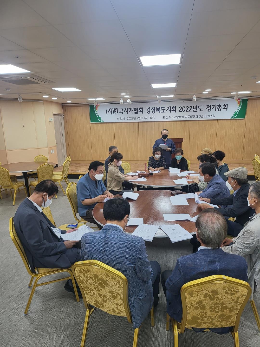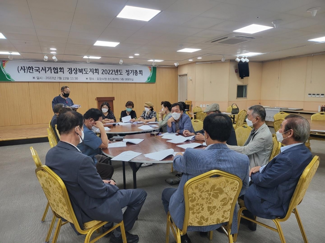 2022년 제22기 (사)한국서가협회 경상북도지회 정기총회가 7월 23일(토)11:30부터~13:25분까지 포항 송도수협 활어회센터 3층
