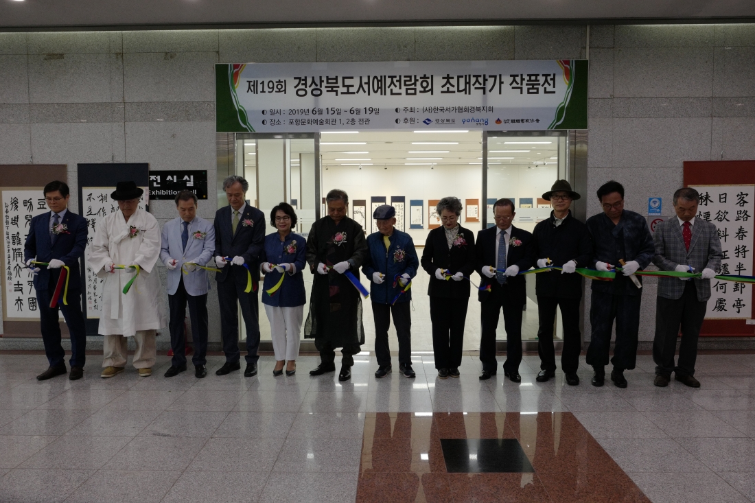 2019년 6월 16일(일)오후 2시 포항문화예술회관 소공연장에서 경북도 문화예술과장,포항시 남구청장, 김정재 국회의원 , 박명재 국회의원,포항예총회장,한국서가협회 강대희 이사장등 내,외빈 200여명이 참석한 가운데 수상자 시상식 및 초대작가전 테이프 컷팅, 다과회등을 성황리에 마치고 전시회를 하였음