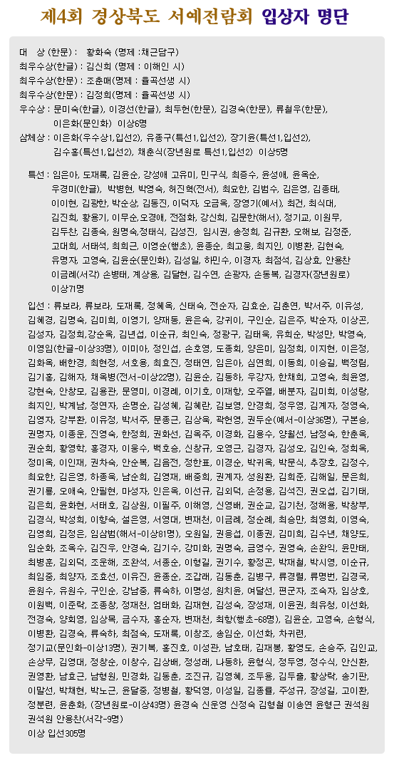 제4회 경상북도서예전람회 입상자 명단