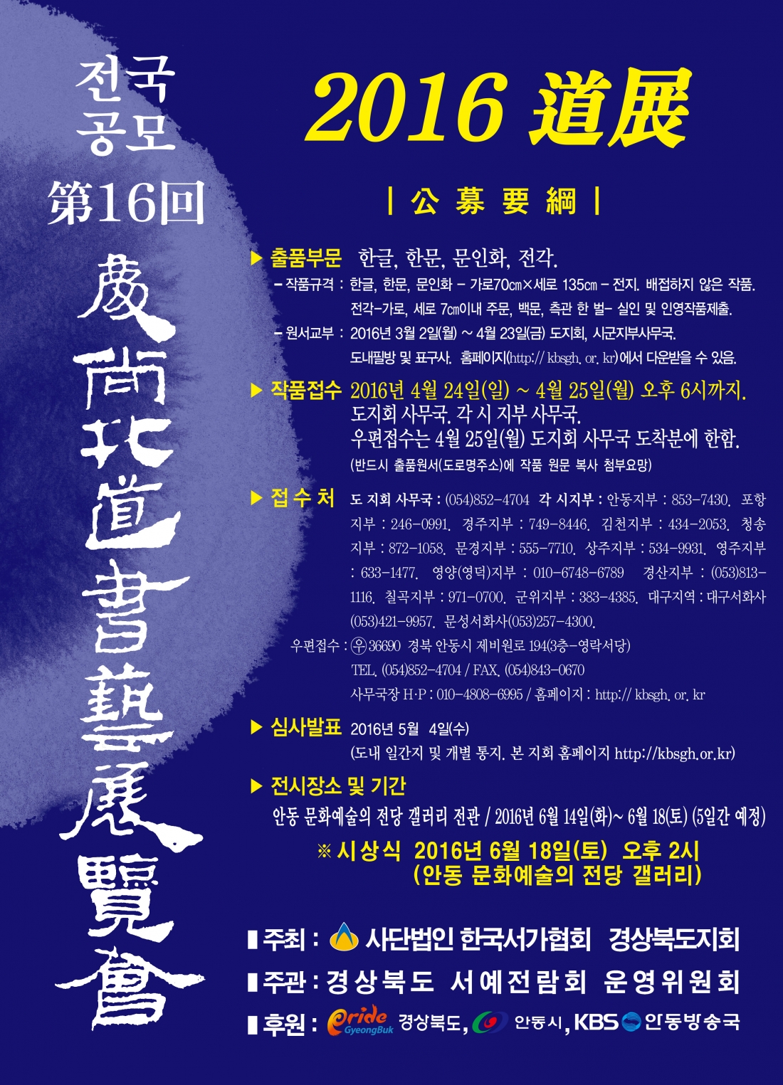 제 목 : 제16회 경상북도 서예전람회 출품 안내